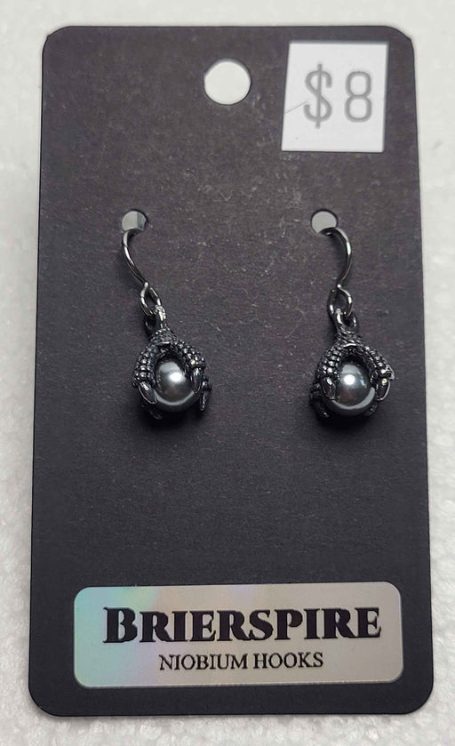 Dragon Claw with a silver gem charm earrings are on silver-toned niobium hooks