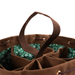 • Oversized green and brown PU suede and canvas dice bag, with eight pockets and custom printed nylon lining