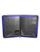 - Blue leatherette front and back with red stitching