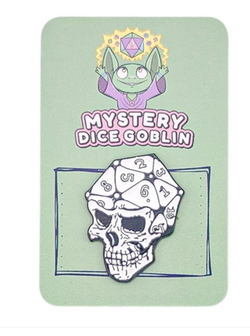 Mystery Dice GoblinRoll for style and embrace the macabre with the D20 Skull Pin from Mystery Dice Goblin. This striking accessory is the perfect fusion of tabletop g...