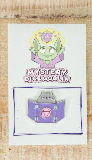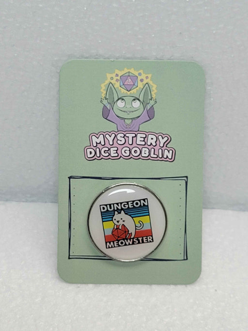 Mystery Dice GoblinHarness the purr-fectly chaotic energy of your favorite tabletop companion with the Dungeon Meowster Pin from Mystery Dice Goblin. This charming ac...