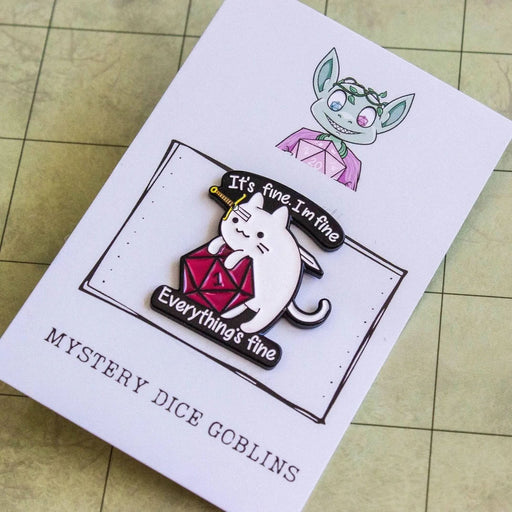 Mystery Dice GoblinRPG and Board Game Inspired Enamel Pins! It's Fine I'm Fine Cat Pin is a must have for any Pin lovers. Showcase your passion for RPGs and Board ...