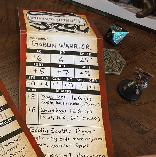 Stat TrackersPacks of 50 Monster Trackers for use with Pathfinder 2e. Use these Trackers to record each monster's stats so there’s no need to reference books du...
