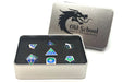 Old School 7 Piece D&D RPG Metal Dice Set: Dragon Forged - Platinum Blue & Green